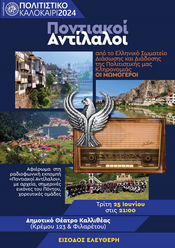 «Ποντιακοί Αντίλαλοι» Από το Ελληνικό Σωματείο Διάσωσης και Διάδοσης της Πολιτιστικής μας Κληρονομιάς «ΟΙ ΜΩΜΟΓΕΡΟΙ» Δημοτικό Θέατρο (Κρέμου 123 & Φιλαρέτου)