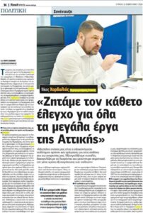 Ακολουθεί ολόκληρη η συνέντευξη του Περιφερειάρχη Αττικής, Νίκου Χαρδαλιά, στην εφημερίδα Real News και τον δημοσιογράφο Γιώργο Σιαδήμα.