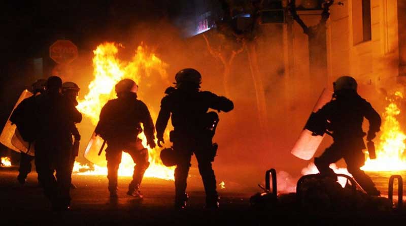 Η επίθεση πραγματοποιήθηκε περίπου 40 λεπτά μετά τα μεσάνυχτα με τους αστυνομικούς να απαντούν με χρήση χημικών.