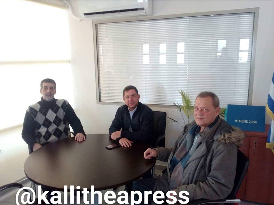 Ο αντιπεριφερειάρχης του Νοτίου Τομέα κ. Χρήστος Καπάταης είχε συνάντηση με εκπροσώπους του Γ.Σ. ΚΑΛΛΙΘΕΑ κ.Τάσο Μουράτη ( Γενικό Αρχηγό Τμημάτων Υποδομής) και κ. Γιώργο Θάνο (Σύμβουλο Προέδρου & Δημοσίων Σχέσεων) με στόχο την ενίσχυση των τμημάτων υποδομών (ποδόσφαιρο, στίβο, ενόργανη) .