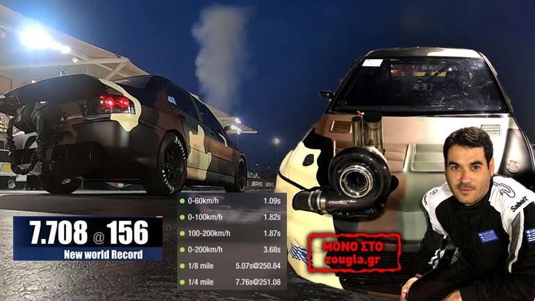 Στη γλώσσα των αριθμών, το ειδικά διαμορφωμένο Mitsubishi EVO κάλυψε το 400-άρι σε 7,708 δευτ. με ταχύτητα εξόδου 252χλμ./ώρα (συνήθως η ταχύτητα αυτή είναι κοντά στα 300 χλμ./ώρα). Το νέο παγκόσμιο ρεκόρ πραγματοποιήθηκε στην πίστα Yas Marina στο Άμπου Ντάμπι στις 18 Απριλίου ενώ αυτή είναι η δεύτερη φορά πιυ ο Έλληνας οδηγός σπάει το παγκόσμιο ρεκόρ.
