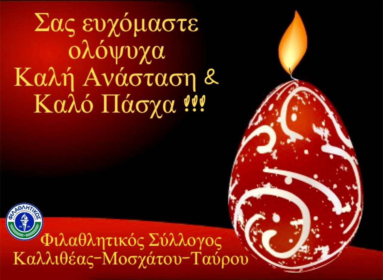 Σας ευχόμαστε ολόψυχα Καλή Ανάσταση και Καλό Πάσχα σε εσάς και τις οικογένειές σας με υγεία και φώτιση στις καρδιές όλων μας!!!