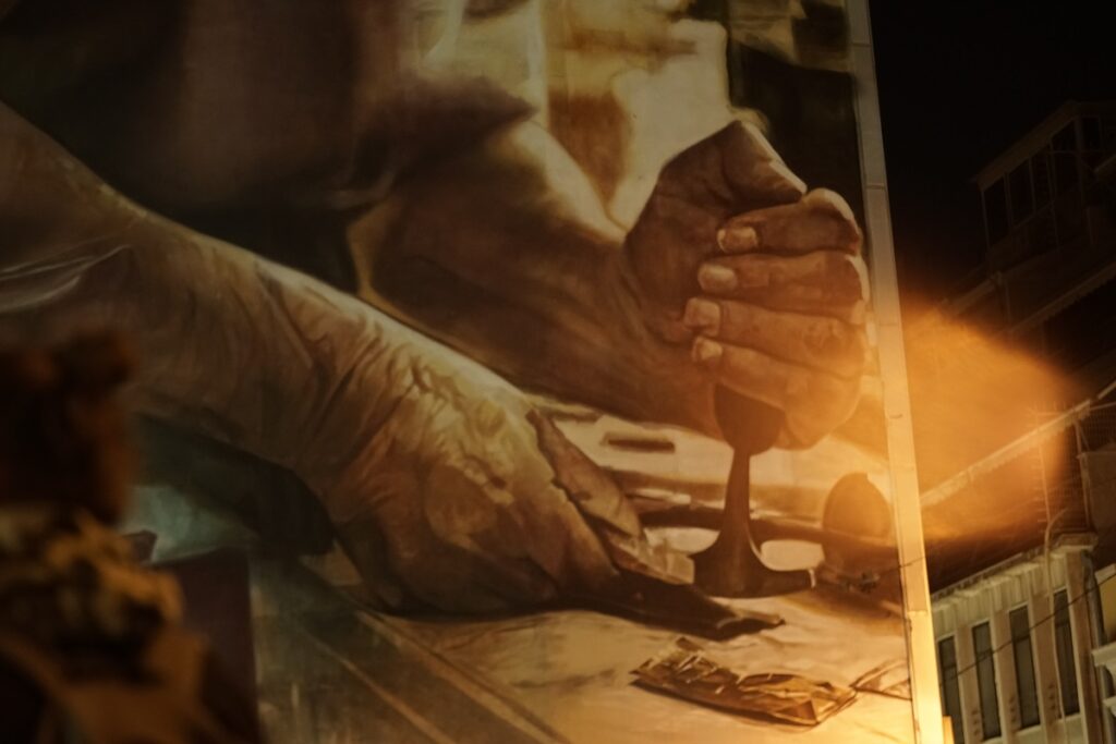 Ακολουθώντας τη συνήθη πρακτική του πριν από κάθε δημιουργία του, ο Guido van Helten επισκέφθηκε και μελέτησε την περιοχή των Εξαρχείων, γνώρισε από κοντά τους κατοίκους και τους επαγγελματίες της και αφού άκουσε τις ιστορίες τους και φωτογράφισε την καθημερινή τους ζωή, κατέληξε στο θέμα που, κατά τον ίδιο, χαρακτηρίζει περισσότερο τη συγκεκριμένη γειτονιά της Αθήνας.