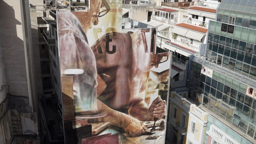 Μια εντυπωσιακή φωτορεαλιστική τοιχογραφία κοσμεί εδώ και λίγες μέρες το κτίριο που στεγάζει το βιβλιοπωλείο Πρωτοπορία και βρίσκεται στη συμβολή των οδών Εμμανουήλ Μπενάκη και Γραβιάς, στα Εξάρχεια. Ο διεθνούς φήμης Αυστραλός street artist Guido van Helten έφτασε στην Αθήνα στα μέσα Νοεμβρίου, ύστερα από πρόσκληση της Πρεσβείας της Αυστραλίας στην Ελλάδα και του Δήμου Αθηναίων, και φιλοτέχνησε μια μεγάλων διαστάσεων τοιχογραφία, η οποία αποτίει φόρο τιμής στη γειτονιά της Αθήνας που τη φιλοξενεί και είναι ταυτισμένη με την έκδοση και διακίνηση των βιβλίων.