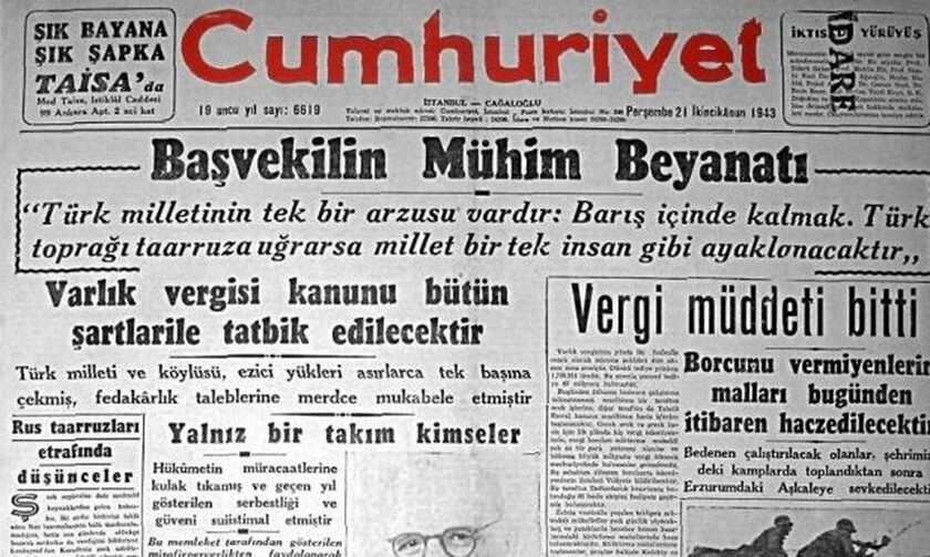 αντίστοιχο ΕΝΦΙΑ στην Τουρκία το 1942 το πασίγνωστο Βαρλίκ, που εξόντωσε τον Ελληνισμό της Τουρκίας.. Τι ήταν αυτό;