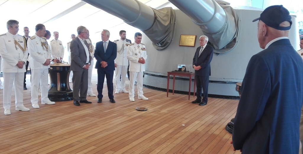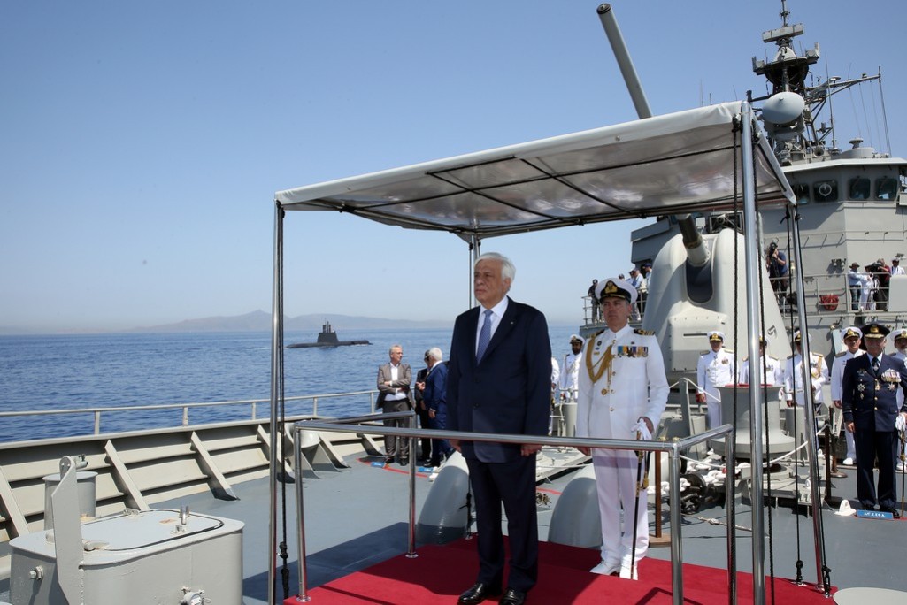 Ο Πρόεδρος της Δημοκρατίας αναφέρθηκε στο αξιόμαχο και την ετοιμότητα του Πολεμικού Ναυτικού της χώρας κατά την υπεράσπιση της επικράτειας και των συνόρων μας, συνακόλουθα δε της επικράτειας και των συνόρων της Ευρωπαϊκής Ένωσης, όπως χαρακτηριστικά σημείωσε. Επίσης επισήμανε ότι η υπεράσπιση αυτή, εκ μέρους του Πολεμικού μας Ναυτικού, καταξιώνεται ακόμη περισσότερο εκ του ότι και τα θαλάσσια σύνορα της χώρας μας και της Ευρωπαϊκής Ένωσης καθορίζονται σαφώς, και δίχως ίχνος δυνατότητας αμφισβήτησης, από το Διεθνές Δίκαιο στο σύνολό του. Τέλος απευθυνόμενος στην Τουρκία σημείωσε: «Διαμηνύουμε λοιπόν προς κάθε γείτονα χώρα, και ιδίως προς τη φίλη και γείτονα Τουρκία, ότι βάση της φιλίας και της καλής γειτονίας μας καθώς και της ευρωπαϊκής της προοπτικής -την οποία ευνοούμε ειλικρινώς- είναι η πλήρης και πιστή τήρηση του Διεθνούς και του Ευρωπαϊκού Δικαίου στο σύνολό τους. Τούτο, άλλωστε, συνιστά και θέση της Ευρωπαϊκής Ένωσης, του ΝΑΤΟ και των ΗΠΑ».