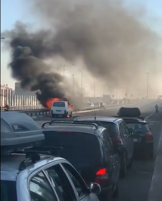 Σύμφωνα με πληροφορίες το όχημα κατευθυνόταν προς Πειραιά όταν ξαφνικά τυλίχτηκε στις φλόγες.