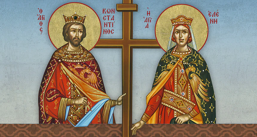 Ο Συναξαριστής της Εκκλησίας, μας παρουσιάζει με τη σύντομη περιγραφή του, το μεγαλείο της προσωπικότητας των εορταζόμενων σήμερα, μεγάλων βασιλέων Κωνσταντίνου και Ελένης. Υπήρξαν όντως Μεγάλοι, μητέρα και γιος, αφού ψαρεύτηκαν στο δίχτυ της Εκκλησίας του Χριστού από τον Μεγάλον Άνακτα – Βασιλιά των βασιλιάδων – θεόν.