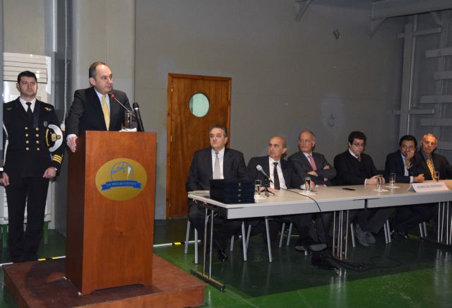 Στην ομιλία του ο κ. Υπουργός αναφέρθηκε στη ναυτιλία ως εθνική υπόθεση στρατηγικής σημασίας και τόνισε τη σημαντικότητα της διατήρησης της ανταγωνιστικότητας της Ελληνικής και κατ’ επέκταση της Ευρωπαϊκής ναυτιλίας μέσα από την ενίσχυση του ελληνικού νηολογίου κάνοντάς το, το ίδιο ανταγωνιστικό με τα υπόλοιπα νηολόγια.
