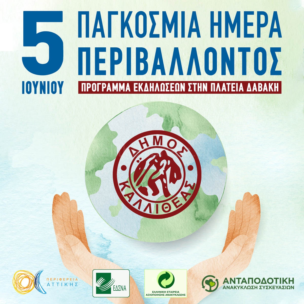 Ο Δήμος Καλλιθέας στο πλαίσιο των πρωτοβουλιών και δράσεων για την Παγκόσμια Ημέρα Περιβάλλοντος, διοργανώνει Φεστιβάλ Περιβαλλοντικής Ευαισθητοποίησης και Ενημέρωσης, από τις 5 έως 8 Ιουνίου 2022 στην Πλατεία Δαβάκη.