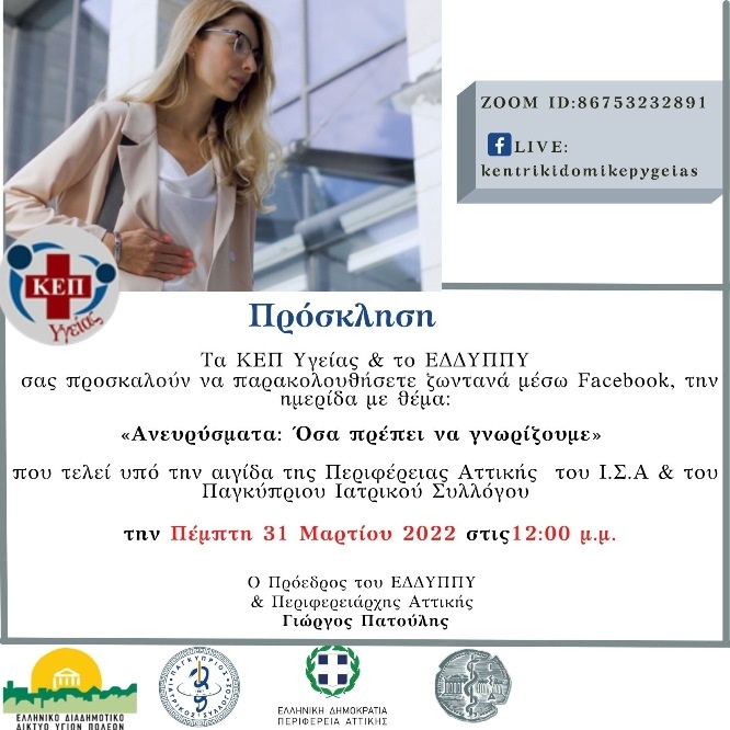Ημερίδα θα πραγματοποιηθεί την Πέμπτη 31 Μαρτίου 2022, στις 12.00 μ.μ. από τον Δήμο Παλαιού Φαλήρου, η οποία τελεί υπό την αιγίδα της Περιφέρειας Αττικής, του Ιατρικού Συλλόγου Αθηνών και του Παγκύπριου Ιατρικού Συλλόγου.