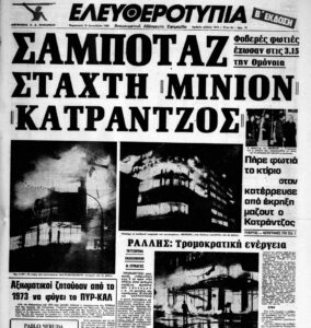 Η Πυροσβεστική, που έφθασε και στα δύο σημεία μισή ώρα αργότερα με 38 οχήματα και 170 άνδρες, είχε να επιτελέσει δύσκολο έργο. Κύριο μέλημά της ήταν να αποτρέψει την επέκταση της φωτιάς στα διπλανά κτίρια. Επιτόπου κατέφθασε και ο πρωθυπουργός Γεώργιος Ράλλης, που μίλησε για «μεγάλη καταστροφή». Πριν από λίγες ώρες υπεράσπιζε στη Βουλή τον πρώτο και τελευταίο προϋπολογισμό της πρωθυπουργικής του θητείας. Βρισκόμαστε ήδη στον αστερισμό του Ανδρέα Παπανδρέου και του ΠΑΣΟΚ, που βρισκόταν προ των πυλών της εξουσίας.