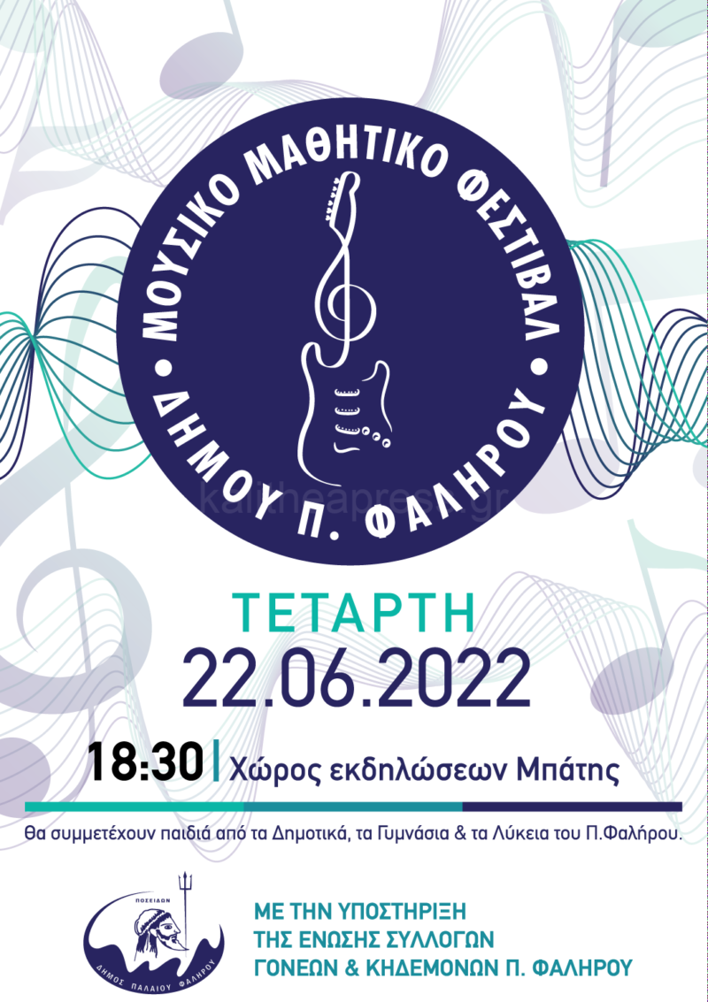 Ο Δήμαρχος Παλαιού Φαλήρου Γιάννης Φωστηρόπουλος και ο Αντιδήμαρχος Παιδείας Μιχάλης Μιχαηλίδης, σας προσκαλούν σε συνεργασία με την Ένωση Γονέων και Κηδεμόνων,στο 8ο Μουσικό Μαθητικό Φεστιβάλ, που θα γίνει: