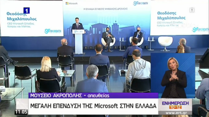 Παρουσιάζεται τώρα σε εκδήλωση στο Μουσείο της Ακρόπολης η νέα επένδυση της microsoft στην Ελλάδα. Την παρουσίαση κάνει ο πρωθυπουργός Κυριάκος Μητσοτάκης μαζί με τον πρόεδρο της Microsoft Μπραντ Σμιθ (Brad Smith), στο πλαίσιο του προγράμματος στρατηγικής συνεργασίας #GrforGrowth.