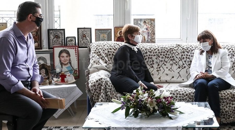 Ο Γιάννης και η Κυριακή Τοπαλούδη, μέσα σε φορτισμένο κλίμα, συζήτησαν για αρκετή ώρα με την κ. Σακελλαροπούλου στο σαλόνι του σπιτιού, ανάμεσα σε φωτογραφίες της φοιτήτριας που χάθηκε τόσο πρόωρα.