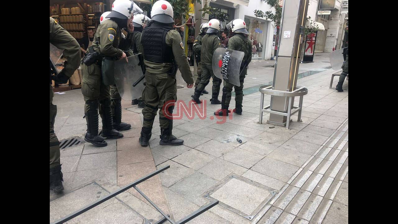 Αυτή την ώρα στην αγορά βρίσκονται σε εξέλιξη επεισόδια μεταξύ αντιεξουσιαστών και αστυνομίας με πέτρες και χημικά, ενώ έχουν προκληθεί σοβαρές φθορές σε καταστήματα.