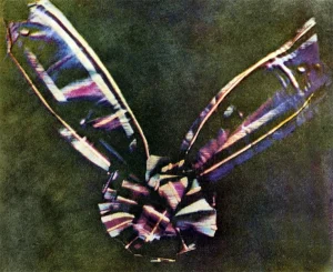 Η πρώτη έγχρωμη φωτογραφία που ελήφθη ποτέ, μπορεί εύκολα να προβληματίσει σχετικά με το τι ακριβώς απεικονίζει. Ορισμένοι μπορεί να σκεφτούν ότι δείχνει ένα κολιέ, ενώ άλλοι πως πρόκειται για την καρικατούρα ενός λαγού. Στην πραγματικότητα, όμως, αυτό που βλέπουμε είναι μια δεμένη καρό κορδέλα! Η εικόνα χρονολογείται από το 1861 και την τράβηξε ο σκωτσέζος φυσικός James Clerk Maxwell, γνωστός για την ανάπτυξη της ηλεκτρομαγνητικής. Προκειμένου να πετύχει την αποτύπωση χρωμάτων, ο Maxwell φωτογράφησε την κορδέλα 3 φορές, χρησιμοποιώντας κόκκινα, μπλε και κίτρινα φίλτρα. Κατόπιν, συνδύασε τις λήψεις προκειμένου να δημιουργήσει μια σύνθεση με όλα τα χρώματα.