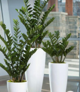 Θα το γνωρίζετε ίσως ως ζάμια. Είναι ένα πολύ ανθεκτικό φυτό με καταπράσινα φύλλα που πολλές φορές το έχετε δει σε εσωτερικούς χώρους και το αγγίζετε για να δείτε αν είναι αληθινό. Κατάγεται από τα τροπικά δάση της Αφρικής και θέλει συνθήκες έμμεσου φωτισμού και όχι απευθείας έκθεσης για να μην πάθει εγκαύματα. Ποτίζουμε ελάχιστα, μία φορά κάθε μήνα και το καλοκαίρι ίσως δύο αν το χώμα είναι στεγνό. Αν ποτίσουμε περισσότερο θα δούμε τα φύλλα να κιτρινίζουν. Είναι φυτό που του αρέσει να στριμώχνεται και δεν το μεταφυτεύουμε ποτέ σε πολύ μεγαλύτερη γλάστρα.