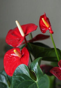 Ανάλογης φροντίδας είναι και το ανθούριο που έχει κόκκινο άνθος στην κορυφή του αντί για λευκό. Ουσιαστικά είναι κόκκινο το κορυφαίο φύλλο του και μοιάζει με άνθος.