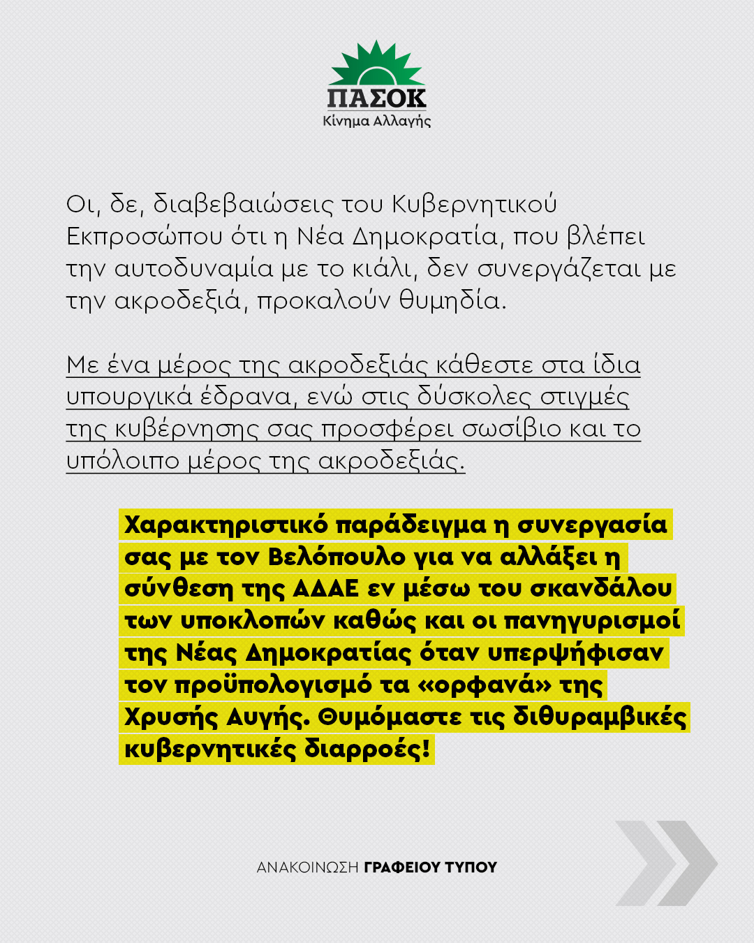 «Δείτε παρακάτω αναλυτικά το περιεχόμενο της ανακοίνωσης του ΠΑΣΟΚ:»