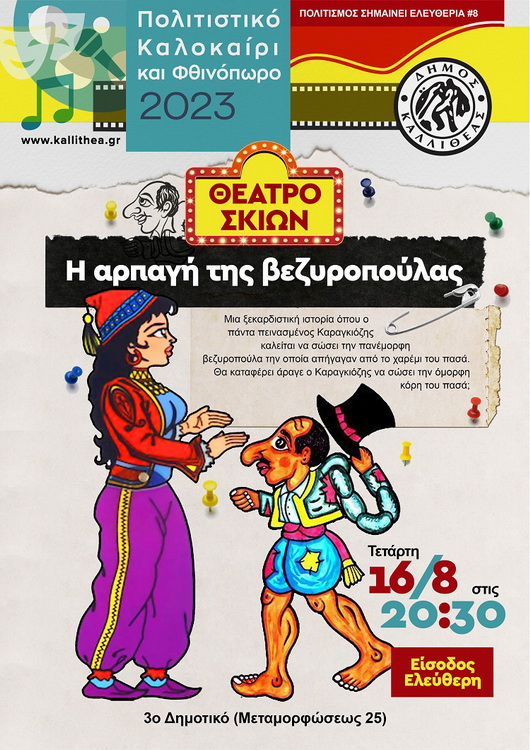 20:30 3ο Δημοτικό (Μεταμορφώσεως 25) Θέατρο Σκιών «Η αρπαγή της βεζυροπούλας»