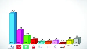 Άλλωστε, κρίσιμος παράγοντας για τις έδρες δεν είναι μόνο το «γαλάζιο» ποσοστό αλλά και το πόσα κόμματα, τελικά, θα μπουν στη Βουλή. Υπενθυμίζεται πως όσο μεγαλύτερο είναι το ποσοστό των κομμάτων που μένουν εκτός Βουλής, τόσο ευκολότερη είναι η αυτοδυναμία για το πρώτο κόμμα, αλλά ισχύει και το αντίστροφο.