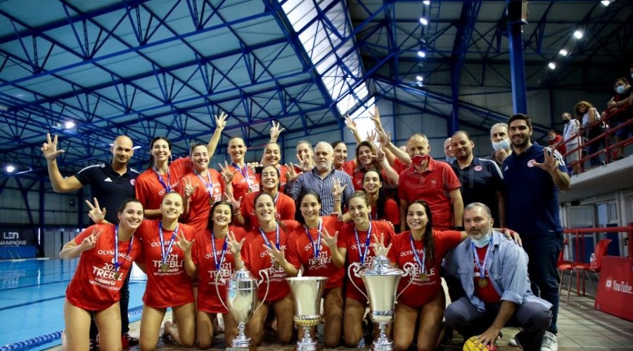 Ο Ολυμπιακός επικράτησε την Κυριακή με 7-4 της Βουλιαγμένης και, κάνοντας το 3-0 στη σειρά των τελικών της Α’ Εθνικής πόλο γυναικών, κατέκτησε το πρωτάθλημα για 8η σερί σεζόν και 12η στην ιστορία του, ολοκληρώνοντας έτσι τη χρονιά με το τρεμπλ, καθώς είχαν προηγηθεί οι κούπες στην Euroleague και το Κύπελλο.