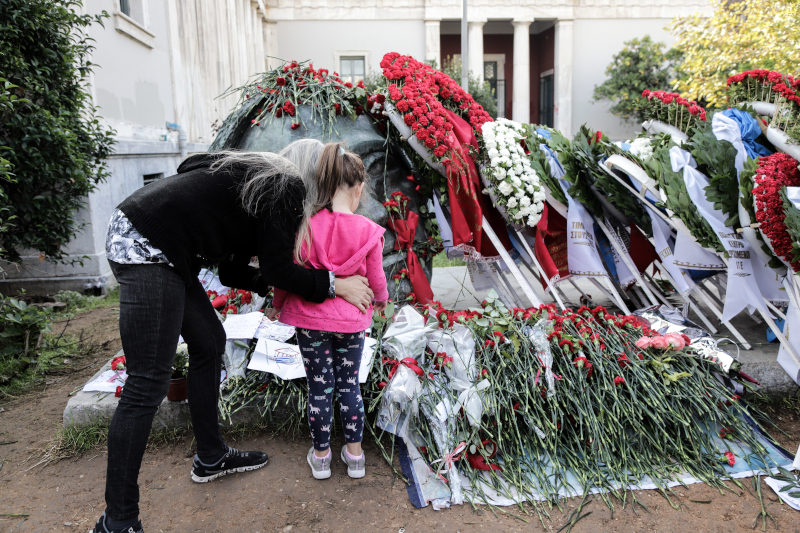 Πολλές οικογένειες με παιδιά, εκπρόσωποι κομμάτων, φορέων, συλλόγων και της πανεπιστημιακής κοινότητας προσέρχονται από το πρωί στο Πολυτεχνείο, για να αποτίσουν φόρο τιμής στους φοιτητές που εξεγέρθηκαν τα ξημερώματα της 17ης Νοεμβρίου 1973.