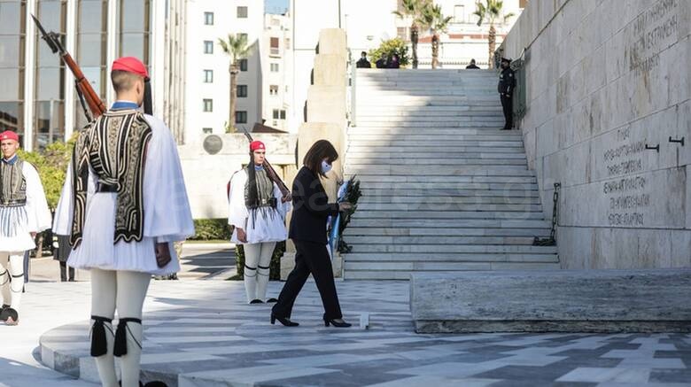 Η Πρόεδρος της Δημοκρατίας Κατερίνα Σακελλαροπούλου συμμετείχε στη Δοξολογία στον Ιερό Ναό Αγίου Διονυσίου Αρεοπαγίτου για τον εορτασμό της ημέρας των Ενόπλων Δυνάμεων ενώ στη συνέχεια κατέθεσε στεφάνι στο Μνημείο του Αγνώστου Στρατιώτη. Αμέσως μετά η κυρία Σακελλαροπούλου σε δήλωσή της υπογράμμισε: