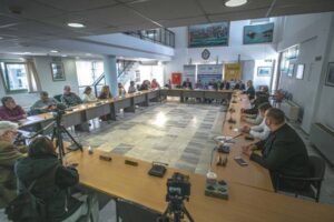 Στη συνέντευξη Τύπου τους διοργανωτές εκπροσώπησαν και τοποθετήθηκαν εμπεριστατωμένα επί των βασικών ενοτήτων του Επιστημονικού Συνεδρίου «Πράσινη Μετάβαση & Κυκλική Οικονομία στην Τοπική Αυτοδιοίκηση», ο Πρόεδρος της Πανελλήνιας Ένωσης Γενικών Γραμματέων Τοπικής Αυτοδιοίκηση «ΚΛΕΙΣΘΕΝΗΣ», Δρ. Μιχάλης Χρηστάκης, ο Γενικός Διευθυντής του φορέα επιμόρφωσης στελεχών Τοπικής Αυτοδιοίκησης «Forum Training & Consulting», Ιωάννης Νικλήτσας και ο Διευθυντής της «Attica Green Expo», Στέφανος Φανουργάκης.