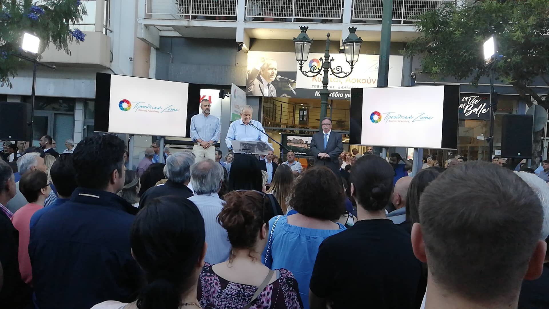 Μέσα σε κλίμα ενθουσιασμού και με έντονη νεανική παρουσία πραγματοποιήθηκε η κεντρική ομιλία του υποψηφίου δημάρχου Κώστα Ασκούνη σε μια υπερδιπλάσια συγκέντρωση (με πάνω από 1500 άτομα) από αυτήν που έλαβε χώρα την ίδια ώρα του κ Καρναβου με 700 άτομα (400 καρέκλες +300 όρθιοι) χωρίς παλμό τα οποία μόλις και μετά βίας συγκεντρώθηκαν προς το τέλος.