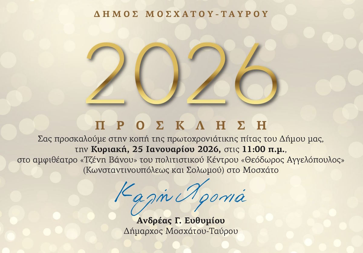 Σας προσκαλούμε στην κοπή της πρωτοχρονιάτικης πίτας του Δήμου μας,