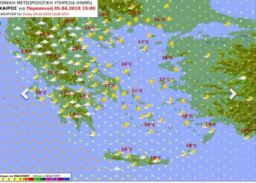 Την Παρασκευή (05/04) λίγες νεφώσεις στα δυτικά, κεντρικά και νότια αυξημένες, όπου θα σημειωθούν τοπικές βροχές και πιθανώς στα δυτικά σποραδικές καταιγίδες από τις βραδινές ώρες. Οι άνεμοι στα δυτικά, κεντρικά και νότια νοτιοανατολικοί 4 με 6 και στο Ιόνιο τοπικά 7 μποφόρ. Στην υπόλοιπη χώρα ανατολικοί 3 με 5 μποφόρ. Η θερμοκρασία σε άνοδο από τα δυτικά.