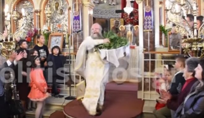 Ο ιερέας σκόρπισε δαφνόφυλλα σύμβολα της νίκης του Χριστού. Την ίδια ώρα οι πολυέλαιοι της εκκλησίας κουνήθηκαν -σαν από σεισμό- και οι πιστοί χτύπησαν τις πάγκες, τα στασίδια, συμμετέχοντας με αυτό τον ιδιαίτερα ηχηρό τρόπο στη χαρμόσυνη είδηση της Ανάστασης του Κυρίου.