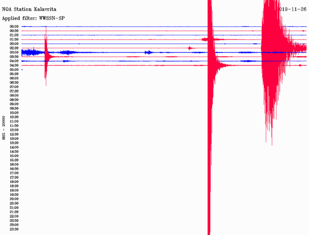 Σεισμική δόνηση μεγέθους 4,6 βαθμών της κλίμακας Ρίχτερ (σύμφωνα με την αναθεωρημένη λύση του Ευρωπαϊκού – Μεσογειακού EMSC), σημειώθηκε το πρωί της Τρίτης (26/11), στις 06:49, σε υποθαλάσσια περιοχή, νότια της Ναυπάκτου, στο δυτικό τμήμα του Κορινθιακού Κόλπου.