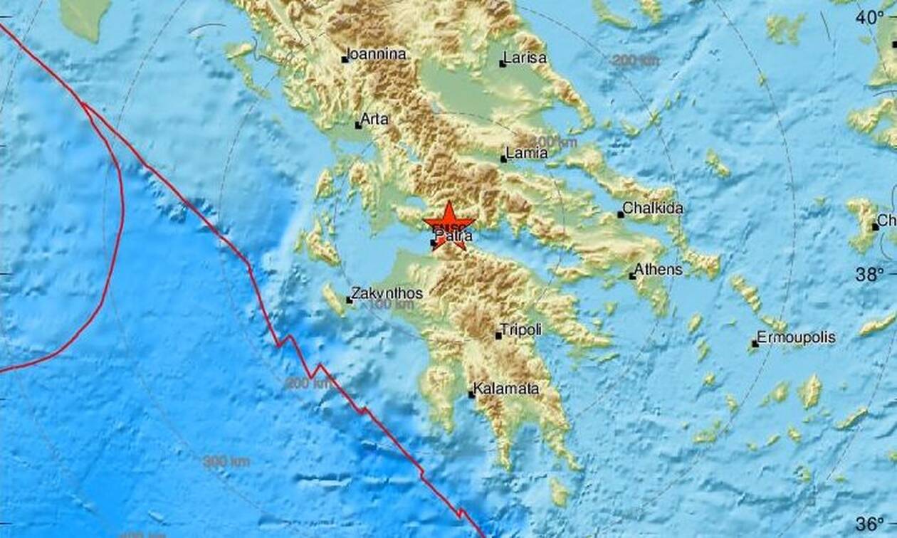 Το ακριβές επίκεντρο τη δόνησης εντοπίζεται στα 18 χλμ. βορειοανατολικά της Πάτρας.