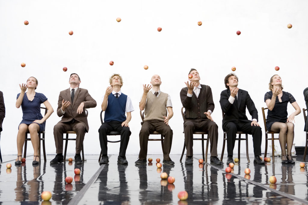 Η ομάδα Giandini Juggling δημιουργήθηκε το 1992 από το διάσημο ζογκλέρ Sean Gandini και την πρωταθλήτρια της γυμναστικής Kati Ylä-Hokkala και έχει παρουσιάσει περισσότερες από 5.000 παραστάσεις σε 50 χώρες. Στο Smashed, οι Gandini και Ylä-Hokkala εμπνέονται από την Pina Bausch συνδυάζοντας στοιχεία από τη χειρονομιακή χορογραφία της με περίτεχνες φιγούρες και εναλλαγές σόλο και ομαδικών ζογκλερικών. Τερπνό και ταυτόχρονα ανησυχαστικό, το Smashed αμφισβητεί κομψά τις αυστηρές συμβάσεις των καλών τρόπων, της ενδυμασίας και της γλώσσας του σώματος. Το αποτέλεσμα είναι ένα πρωτότυπο υβρίδιο ζογκλερικής επιδεξιότητας με εξαιρετική ακρίβεια συντονισμού και συγχρονισμού.
