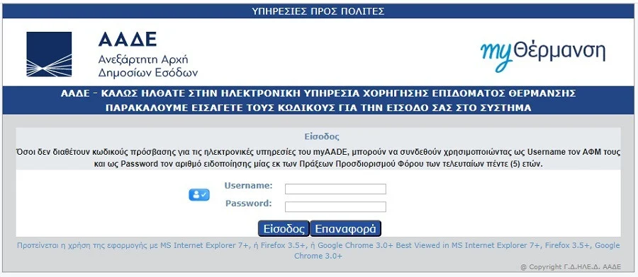Άνοιξε η πλατφόρμα, όπου θα υποβάλλονται οι αιτήσεις για τη χορήγηση του επιδόματος θέρμανσης, σύμφωνα με την ΑΑΔΕ.