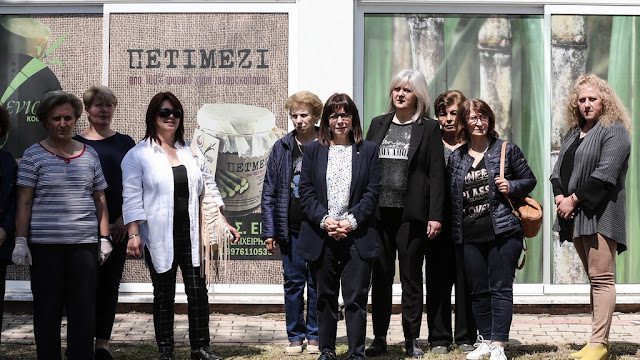 Στη συνέχεια, η Πρόεδρος μετέβη στην κοινωνική συνεταιριστική επιχείρηση «Γενισέα», που παράγει πετιμέζι από ζαχαροκάλαμο. Η κυρία Σακελλαροπούλου συζήτησε με τις έξι συνιδρύτριες του συνεταιρισμού για την εμπορική τους δραστηριότητα, που εκτός από την Ελλάδα καλύπτει και το εξωτερικό.