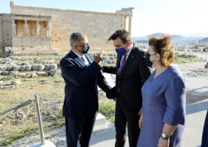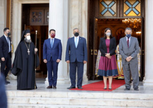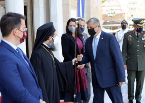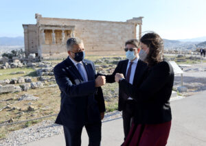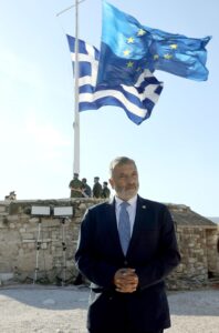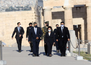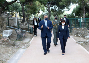 Ο Περιφερειάρχης Αττικής Γ. Πατούλης υποδέχτηκε το πρωί σήμερα, Κυριακή 9 Μαΐου, την Πρόεδρο της Δημοκρατίας κυρία Κατερίνα Σακελλαροπούλου στον Ιερό Βράχο της Ακροπόλεως για την Έπαρση των Σημαιών της Ελλάδος και της Ευρωπαϊκής Ένωσης.