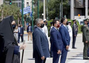 Στην τελετή παραβρέθηκαν η Υπουργός Παιδείας Ν. Κεραμέως ως εκπρόσωπος της Κυβέρνησης, η Υπουργός Πολιτισμού Λ. Μενδώνη, ο Αναπληρωτής Υπουργός Εξωτερικών Μιλτιάδης Βαρβιτσιώτης, ο Αντιπρόεδρος της Βουλής Χ. Αθανασίου, ο Συντονιστής Κ.Ο του ΚΙΝΑΛ στο Ευρωκοινοβούλιο Νίκος Ανδρουλάκης, η Πρέσβης της Πορτογαλίας στην Αθήνα Ελένα Πάιβα, ο Επικεφαλής της Αντιπροσωπείας της ΕΕ στην Ελλάδα Γιώργος Μοσχόβης, ο Επικεφαλής του γραφείου του Ευρωπαϊκού Κοινοβουλίου στην Ελλάδα Κωνσταντίνος Τσουτσοπλίδης, ο Α/ΓΕΕΘΑ Στρατηγός Κ. Φλώρος, ο Γενικός Γραμματέας Πολιτισμού Γ. Διδασκάλου, ο Αντιδήμαρχος Αθηναίων Ε. Καλαμπόκας και το σύνολο της ηγεσίας των Ενόπλων Δυνάμεων και των Σωμάτων Ασφαλείας.