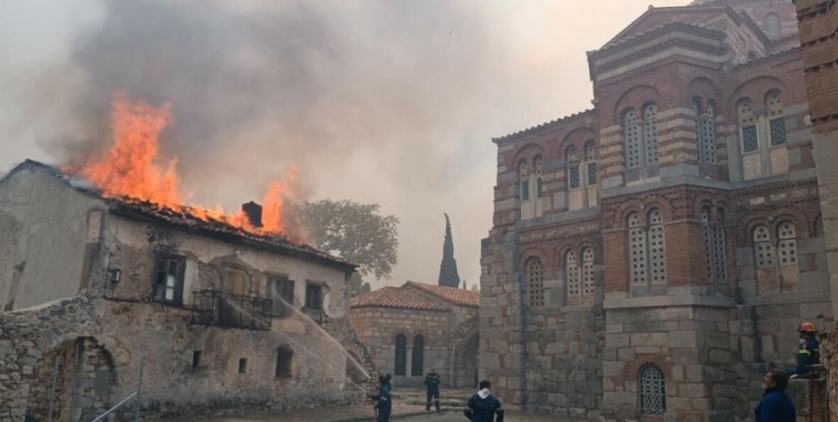 Στις φλόγες του Μοναστήρι του Οσίου Λουκά