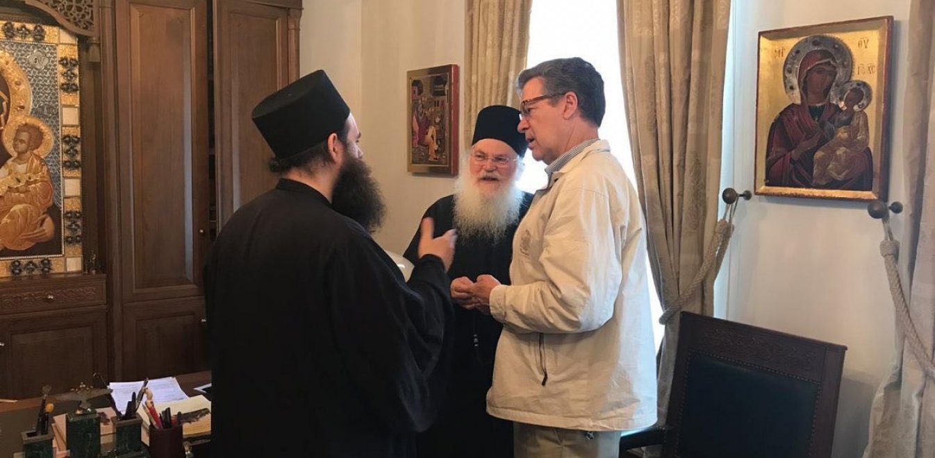 Ο Αμερικανός αξιωματούχος συναντήθηκε μεταξύ άλλων με τον ηγούμενο Εφραίμ της Μονής Βατοπεδίου. Οι δύο τους συζήτησαν για την ιστορία του Μοναστηριού, το έργο του και τον ρόλο του στη διατήρηση και αναζωογόνηση των ισχυρών συνδέσεων της Μονής με την Κοινότητα των ΗΠΑ.