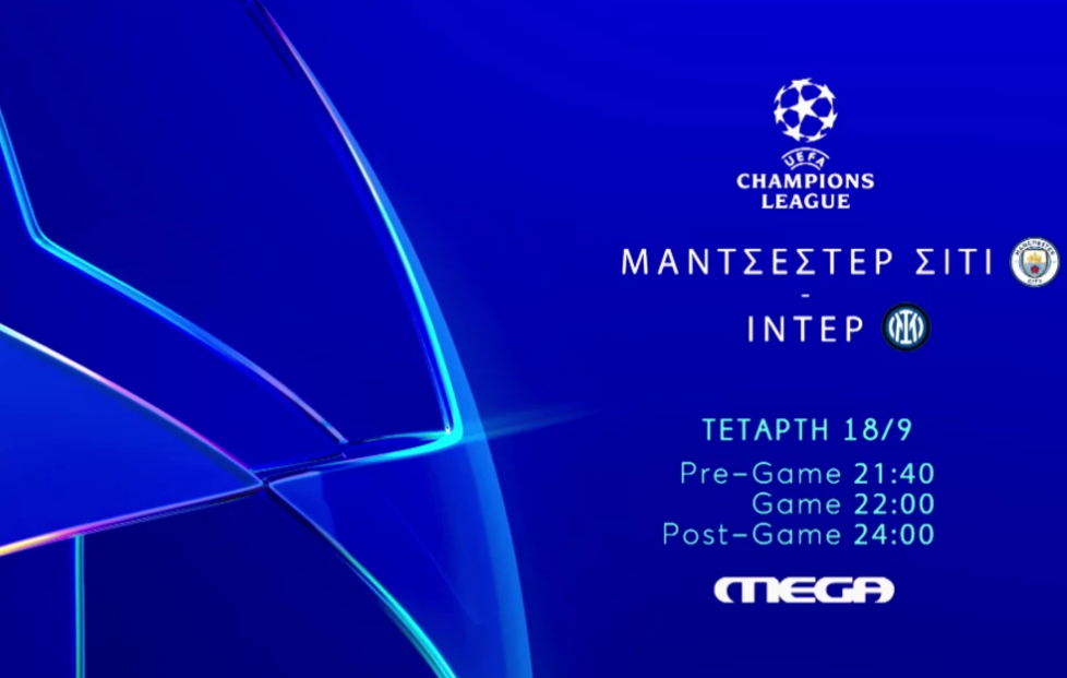 Την Τετάρτη 18 Σεπτεμβρίου, στις 22:00, η σύγκρουση της Μάντσεστερ Σίτι με την Ίντερ στο remake του τελικού του 2023 κόβει την ανάσα. Από την Αγγλία και το «City of Manchester Stadium», τo MEGA θα μεταδώσει ζωντανά την πρώτη δυνατή αναμέτρηση του UEFA Champions League ανάμεσα σε δυο υπερδυνάμεις της διοργάνωσης.
