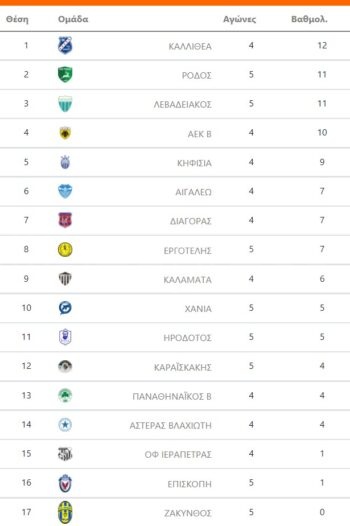 Η Καλαμάτα νίκησε τον Εργοτέλη 2-0 πραγματοποιώντας την δεύτερη σερί νίκη της στον όμιλο.Ο Λεβαδειακός επικράτησε με ευκολία του ΟΦ Ιεραπετρας 3-1 Και πλέον βρίσκεται στη δεύτερη θέση του βαθμολογικού πίνακα μαζί με την ομάδα της Ρόδου. Ισόπαλος 1-1 έληξε ο αγώνας ανάμεσα στην Επισκοπή και τα Χανιά. Παράλληλα η Ρόδος κέρδισε 4-1, χωρις ιδιαίτερη δυσκολία την Ζάκυνθο η οποία έχει μηδέν βαθμούς και βρίσκεται στην τελευταία θέση του βαθμολογικού πίνακα.