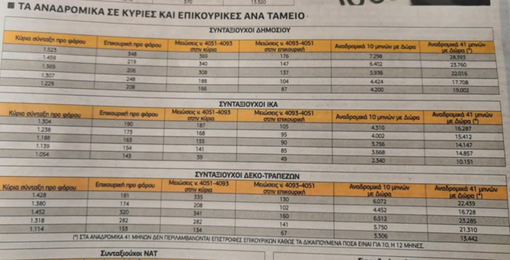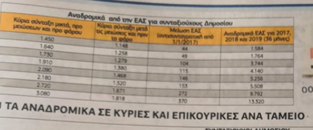Αναδρομικά: Δείτε τους πίνακες με τα ποσά