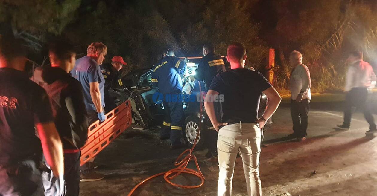 Χαρακτηριστικό είναι ότι χρειάστηκε η συνδρομή της Πυροσβεστικής Υπηρεσίας για να απεγκλωβιστούν οι τραυματίες κόβοντας τις πόρτες του αυτοκινήτου,και να μεταφερθούν οι τραυματίες με ασθενοφόρο του ΕΚΑΒ, στο Νοσοκομείο της Νάξου…