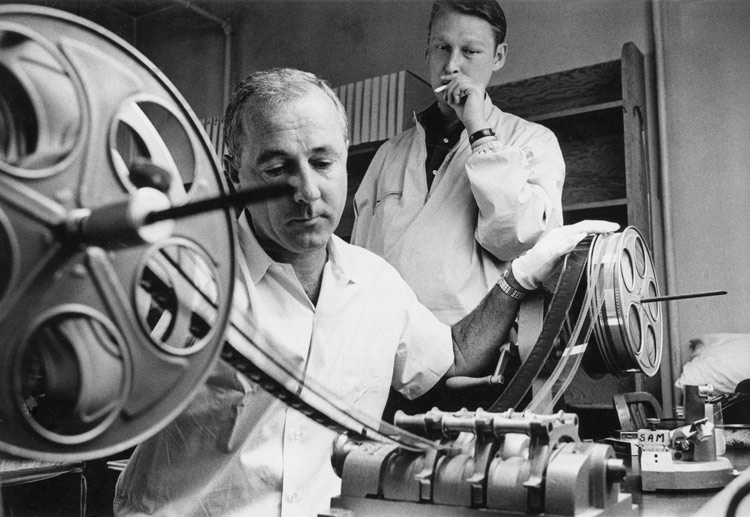 Στην αίθουσα κοπής του φιλμ “Who’s Afraid of Virginia Woolf ?”. Εικονίζονται (από αριστερά) ο editor Sam O’Steen και o σκηνοθέτης Mike Nichols.