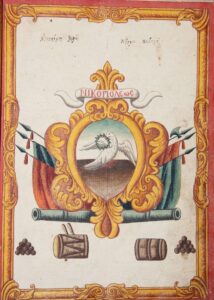 Ο κώδικας φέρει εξαιρετική εικονογράφηση, απεικονίζοντας αφενός τον Άγιο Χαράλαμπο με ιερατικά άμφια και την επιγραφή «ο Άγιος Χαραλάμπης» (εικ.1) και αφετέρου τον θυρεό της πόλης της Πρέβεζας (εικ.2), εντός περίτεχνης σύνθεσης και με τις επιγραφές «Νικοπόλιος ιεράς»,«Κτίσμα Σεβαστού» και «Νικόπολεως». Ο θυρεός είναι περιστέρι που φέρει στο ράμφος του δάφνινο στεφάνι. Τόσο ο θυρεός όσο και οι επιγραφές παραπέμπουν στην αρχαία Νικόπολη. Τον θυρεό αυτόν τον συναντάμε και σε άλλους σωζόμενους κώδικες εκκλησιών της Πρέβεζας, ενώ υπήρχε και στην νότια πλευρά του Πύργου του Ρολογιού της πόλης, στο λιθανάγλυφο από το οποίο η παράσταση έχει αποξεσθεί και σήμερα σώζεται μόνο η επιγραφή «Νικόπολεως». Για τονσυγκεκριμένο θυρεό ή πολεόσημο δεν θα επεκταθούμε, καθώς το θέμα έχει αναλυθεί εκτενώς σε άρθρα των κ. Νίκου Δ. Καράμπελα και Νίκου Κ. Κουρκουμέλη.