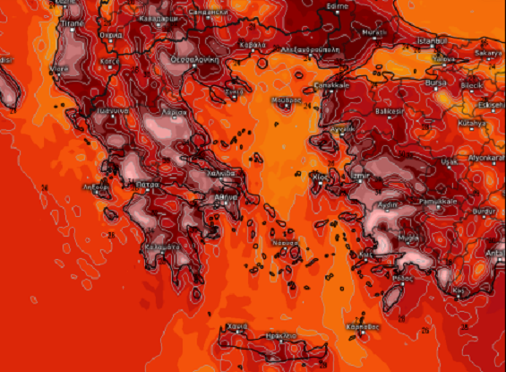 δ. στη Θράκη και την υπόλοιπη νησιωτική χώρα τους 37 με 39 βαθμούς Κελσίου.